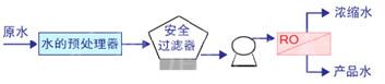 下圖為反滲透原理圖及常規工藝流程圖: